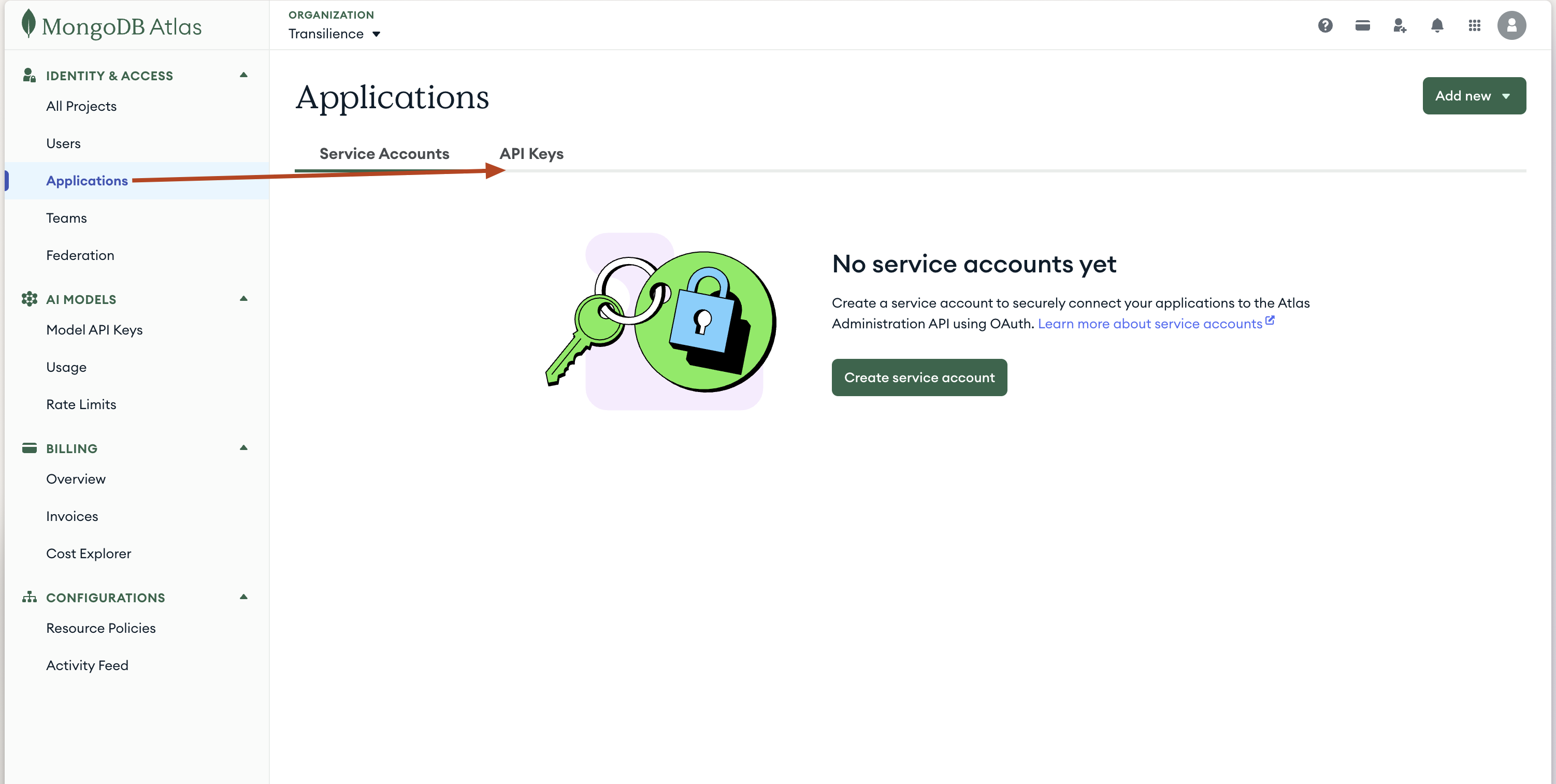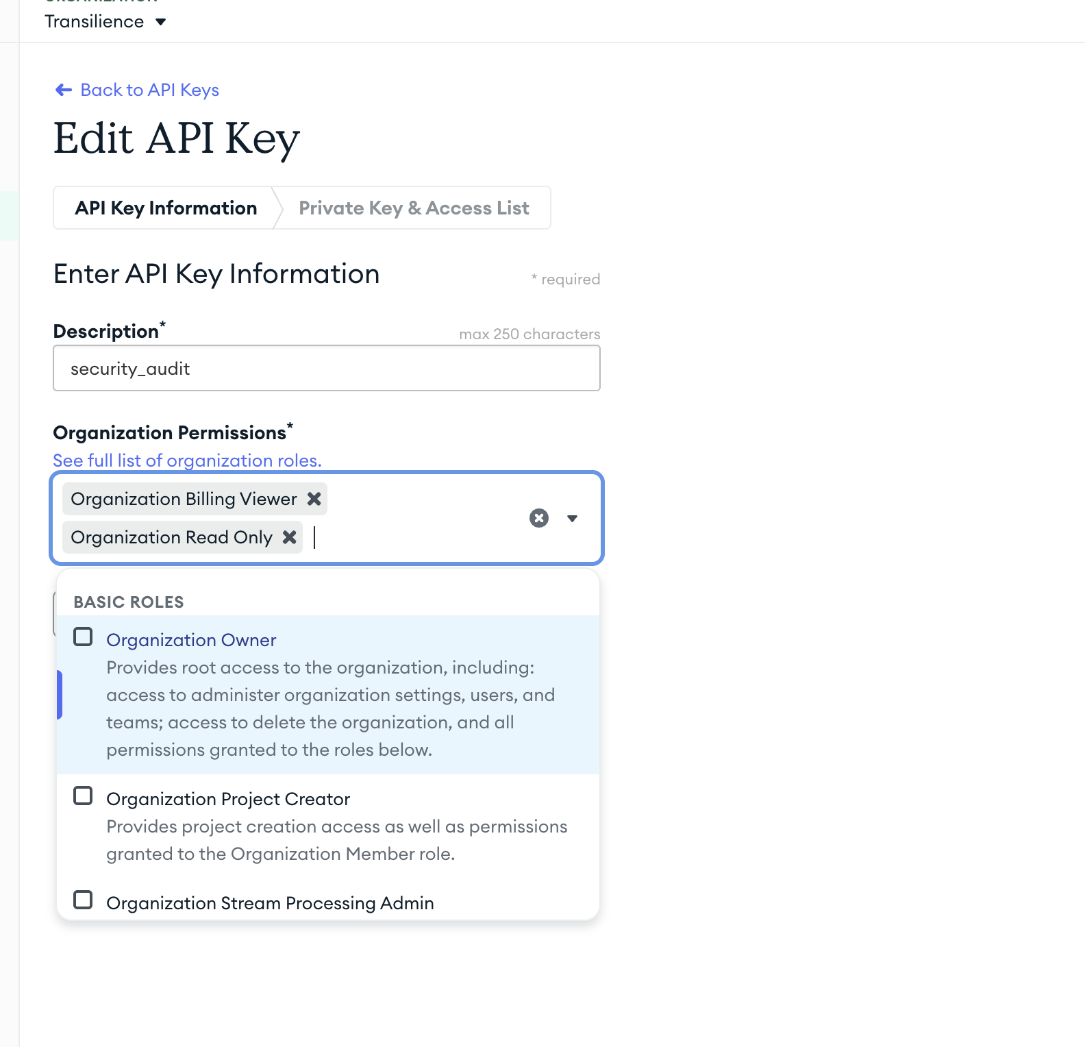 Pass all the keys (Mongo will give you two items) that Mongo gives you to your account manager at Transilience
