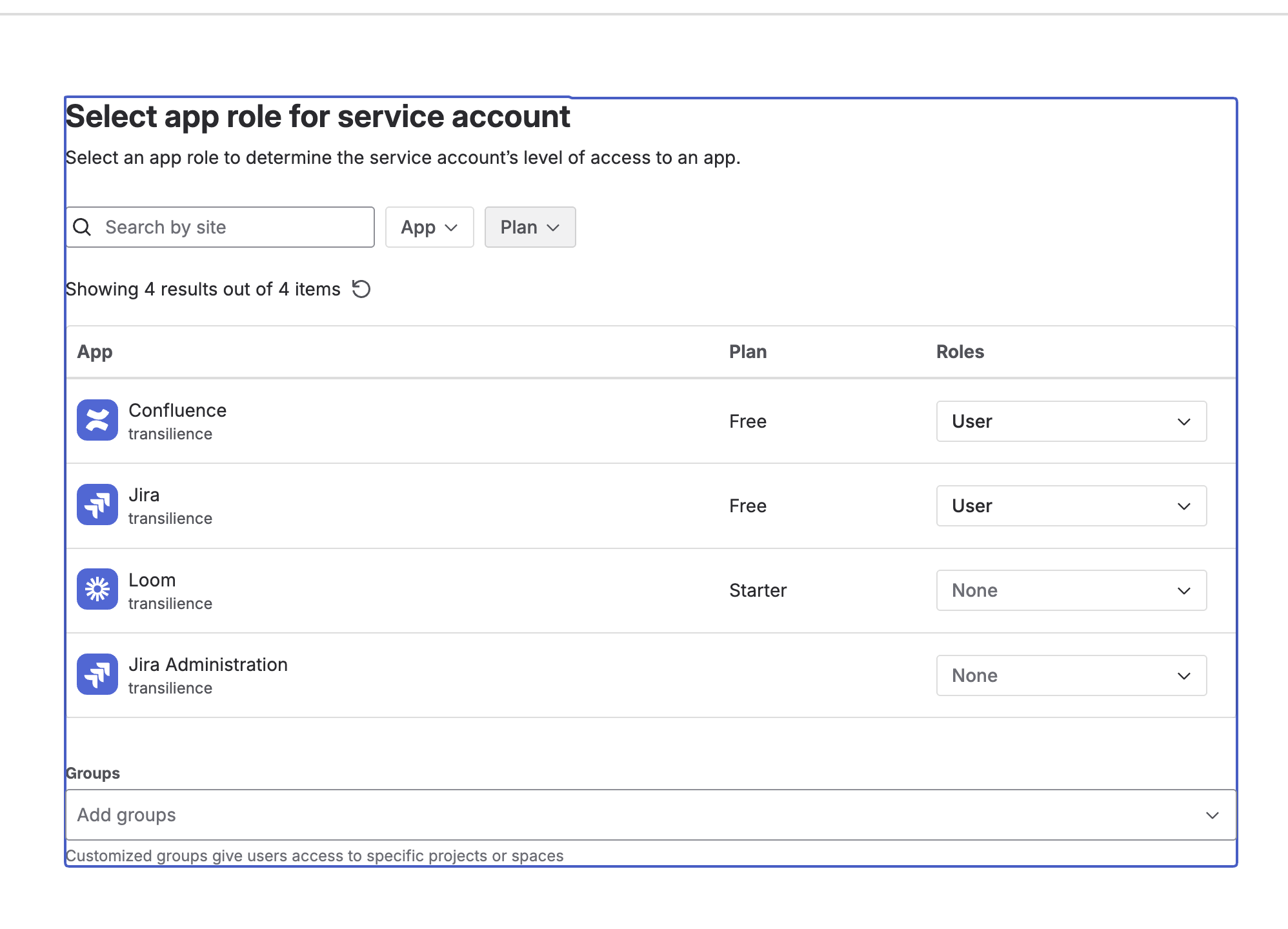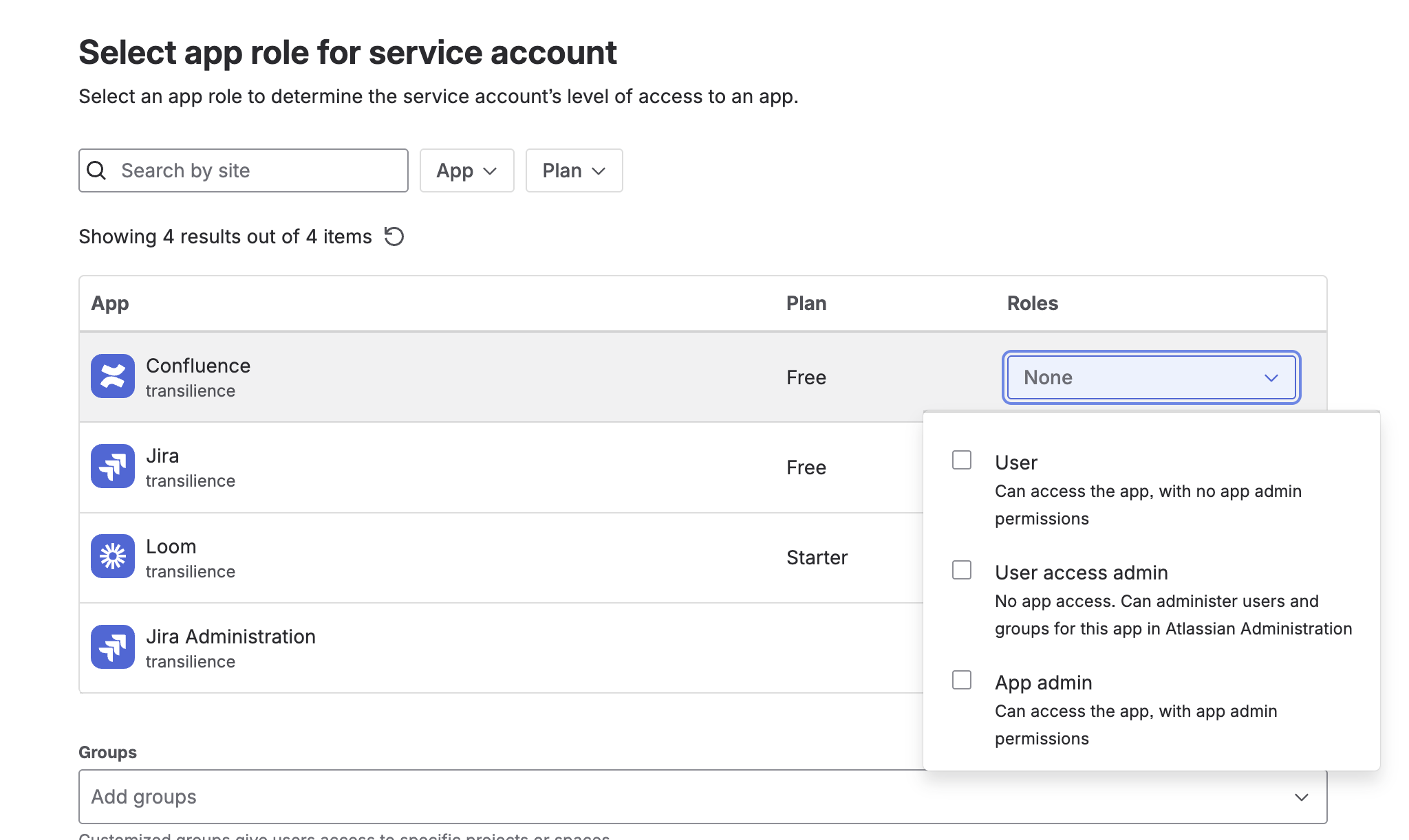 Select apps and app roles
