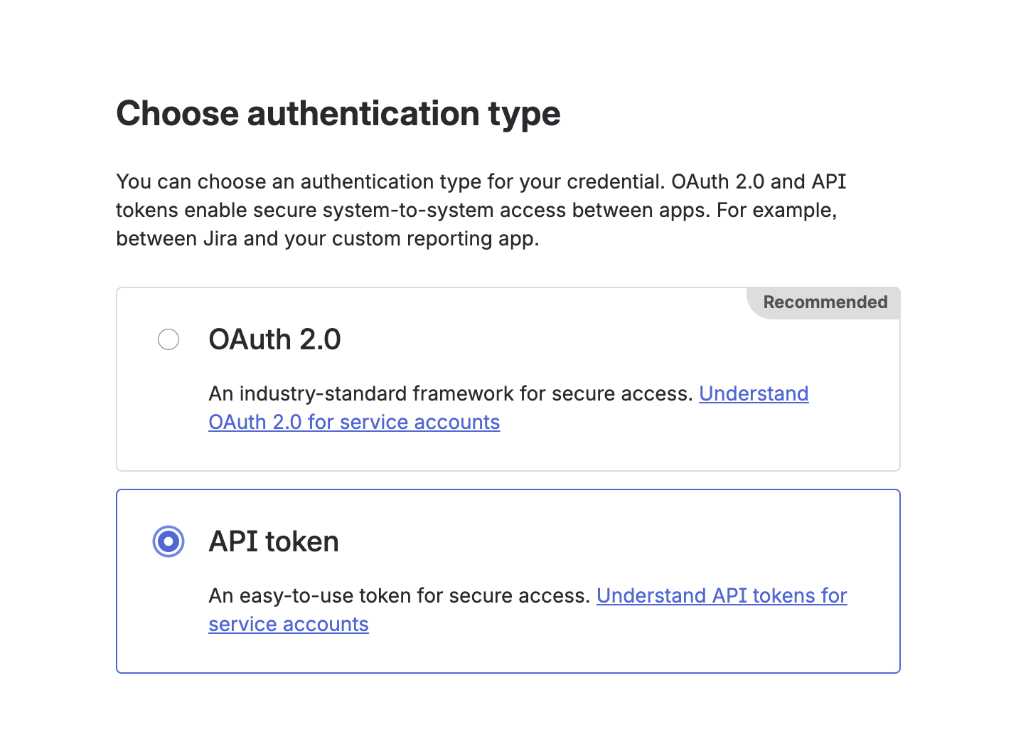 Choose authentication type